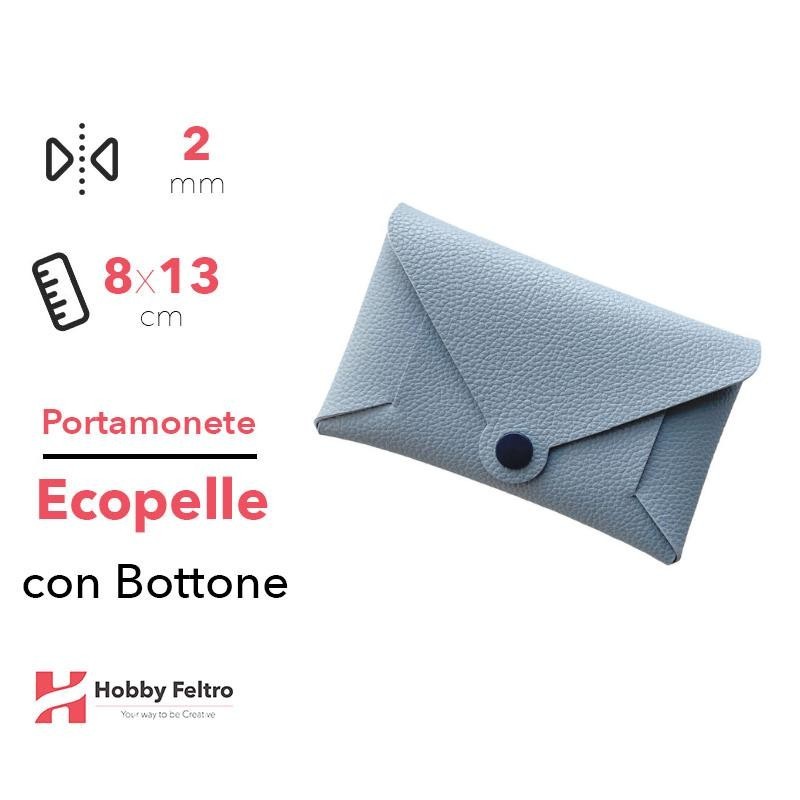 Portamonete in ecopelle elegante e artigianale, completo di bottoncino colorato.